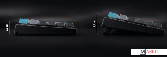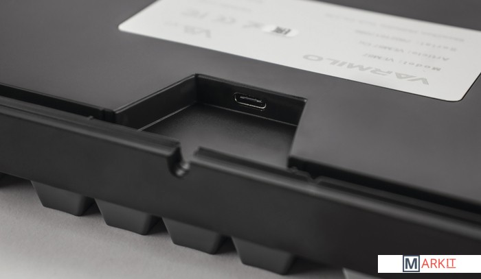 В обновлённой версии клавиатура получила USB Type-C порт вместо Mini-USB. Он спрятан в центре под корпусом, а на самой клавиатуре есть центральная и две боковые канавки под кабель.Кейкапы V-SilkИзготовлены из прочного PBT пластика с применением dye-sublimation технологии и выгравированными символами на боках. Клавиши гладкие и приятные на ощупь, меньше пачкаются, а символы не стираются и не чувствуются при печати.Стабилизаторы, смазанные на заводеСочетание стабилизаторов и смазки делает ход клавиш enter, space, shift, backspace равномерным и плавным.Белая подсветкаИмеет 3 режима: выключена, статичное свечение, эффект затухания, и 4 уровня яркости.Режимы меняются через FN + стрелка вправо, FN + стрелка вверх/вниз меняет яркость в режиме статичного свечения и скорость в режиме затухания.Мультимедиа и дополнительные FN функцииКлавиатура поддерживает сочетания клавиш для регулировки громкости и управления музыкой. Также можно отключить кнопку windows и поменять клавиши Fn и Win/Ctrl и Caps Lock местами.Из-за особенности производства символы на клавишах могут быть расположены с небольшим сдвигом.Регулируемые ножкиПозволят приподнять клавиатуру и изменить угол наклона для комфортной печати, а прорезиненный низ не даст клавиатуре сдвинуться с места.Клавиатура совместима с Mac OSМультимедиа и дополнительные FN функции совместимы с MAC OS и работают как полагается, а поменять местами клавиши-модификаторы можно в системных настройках. Проверено с MAC OS 10.13.Функция Full N-key Rollover по USB (NKRO)Позволяет нажимать одновременно неограниченное количество клавиш. Удобно в игре, когда нужно прожимать многокнопочные комбинации.Осторожно, старые BIOS-ы могут не реагировать на клавиатуру из-за NKRO.Если ALT и WIN поменялись местами или сбились назначения клавиш:Зажмите Fn+W, пока не заморгает CapsLock (поменять местами ALT и WIN)Fn+Esc или Win+Esc (сброс до заводских)