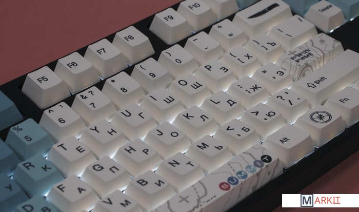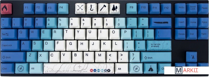 Varmilo — яркая звезда на небосводе китайских производителей клавиатур. Смазанные стабилизаторы, ручная сборка, эстетичный дизайн - каждая клавиатура Varmilo как произведение искусства. Чтобы ощутить дух Скандинавии, необязательно ехать в Норвегию, Данию или Швецию - достаточно посмотреть на дизайн клавиатуры Summit, который разработали Датские дизайнеры из Mudflats Creative. Вершины Ютунхеймена, лес, топор, палатка — все, что необходимо для прекрасного времяпрепровождения.В обновлённой версии клавиатура получила USB Type-C порт вместо Mini-USB. Он спрятан в центре под корпусом, а на самой клавиатуре имеются центральная и две боковые канавки под кабель.Кейкапы V-SilkИзготовлены из прочного PBT пластика с применением dye-sublimation технологии и выгравированными символами на боках. Клавиши гладкие и приятные на ощупь, меньше пачкаются, а символы не стираются и не чувствуются при печати.Стабилизаторы, смазанные на заводеСочетание стабилизаторов и смазки делает ход клавиш enter, space, shift, backspace равномерным и плавным.Мультимедиа и дополнительные FN функцииКлавиатура поддерживает сочетания клавиш для регулировки громкости и управления музыкой. Также можно отключить кнопку windows и поменять клавиши Fn и Win/Ctrl и Caps Lock местами.Из-за особенности производства символы на клавишах могут быть расположены с небольшим сдвигом.Регулируемые ножкиПозволят приподнять клавиатуру и изменить угол наклона для комфортной печати, а прорезиненный низ не даст клавиатуре сдвинуться с места.Клавиатура совместима с Mac OSМультимедиа и дополнительные FN функции совместимы с MAC OS и работают как полагается, а поменять местами клавиши-модификаторы можно в системных настройках. Проверено с MAC OS 10.13.Функция Full N-key Rollover по USB (NKRO)Позволяет нажимать одновременно неограниченное количество клавиш. Удобно в игре, когда нужно прожимать многокнопочные комбинации.Осторожно, старые BIOS-ы могут не реагировать на клавиатуру из-за NKRO.
