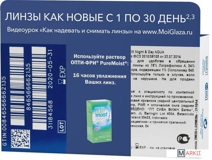 Markit » Контактные линзы » Контактные линзы Alcon Air Optix Night&Day Aqua -1 дптр 8.4 мм