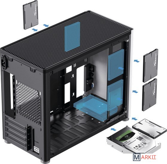 Конфигурация вентиляторов сверху: 2x120 или 2x140mmснизу: 3x120 или 2x140mmсзади: 1x120mm